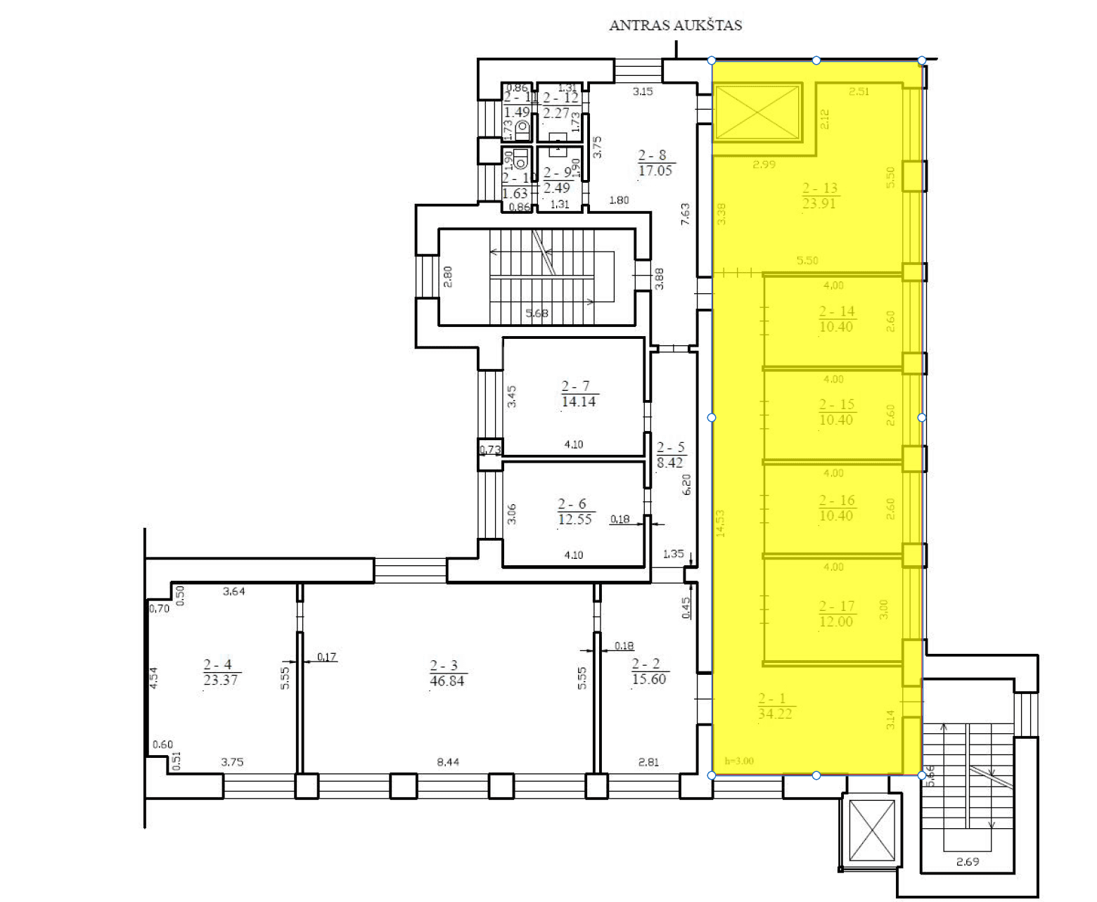 🏢 Nuomojamos patalpos: nuo 17,60 iki 40,46 kv. m., antrame penkiaaukščio pastato aukšte.